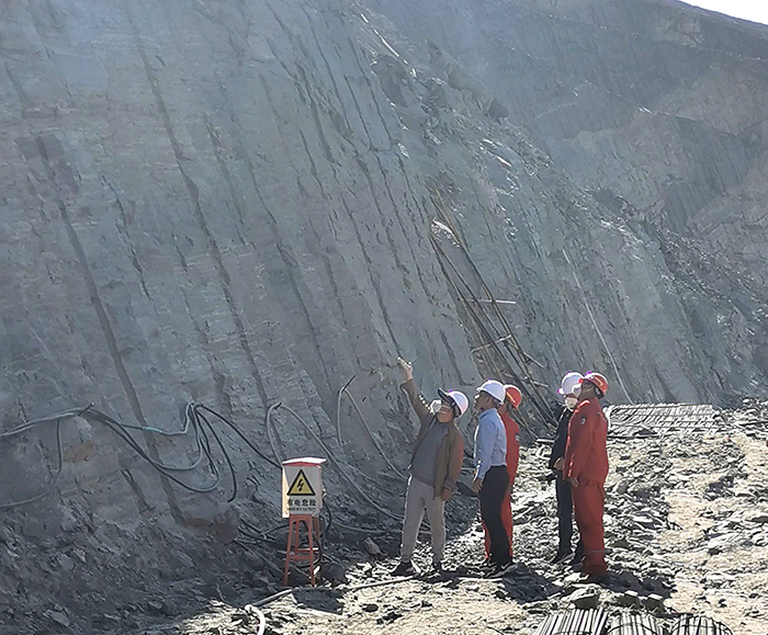 近日,隊(duì)黨委書記袁勝超深入巖土工程公司新疆蒙庫(kù)鐵礦邊坡治理項(xiàng)目部調(diào)研。