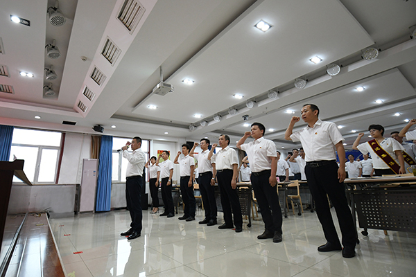 恰是百年風(fēng)華,奮斗正當(dāng)其時(shí)。6月30日,五一七隊(duì)召開慶祝中國共產(chǎn)黨成立100周年大會(huì),表彰先進(jìn)基層黨組織、優(yōu)秀黨員、優(yōu)秀黨務(wù)工作者、黨史學(xué)習(xí)先進(jìn),重溫入黨誓詞,感悟初心使命,為黨員示范崗授牌。隊(duì)黨委書記袁勝超講授題為《賡續(xù)紅色基因 傳承“三光榮”精神 奮力推進(jìn)五一七大隊(duì)高質(zhì)量發(fā)展“一路向陽”》專題黨課。隊(duì)黨委副書記、隊(duì)長(zhǎng)劉智賢主持會(huì)議并宣讀表彰決定。