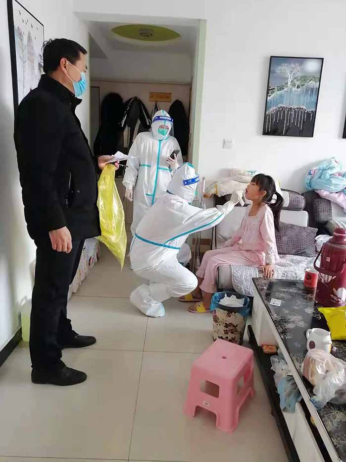 ——有序采樣,不落一人。環(huán)境工程公司黨支部李維欣同志和妻子齊上陣,在社區(qū)分配到志愿服務(wù)任務(wù)時(shí)挺身而出,義無(wú)反顧地穿梭在樓宇和人群中。他們跑上跑下,挨門(mén)挨戶(hù)登記,生怕漏掉一個(gè)人,邀請(qǐng)鄰居們?nèi)肴?,核酸檢測(cè)前又挨個(gè)通知大家按照時(shí)間節(jié)點(diǎn)下樓排隊(duì)檢測(cè),采樣期間主動(dòng)拉起警戒線,毅然做好秩序維護(hù),當(dāng)好小區(qū)“保障員”,確保不扎堆,不排長(zhǎng)隊(duì),銜接合理、有序高效。寒冷的冬天里他們戴著憋悶的口罩,氣喘吁吁,嚴(yán)實(shí)的棉服卻冒著“熱氣”,時(shí)而不時(shí)用衣袖擦拭額頭的汗水。面對(duì)社區(qū)交給的任務(wù),他們毫不退縮,他們的選擇就是沖鋒在前、逆行而上,確保社區(qū)有序采樣,不落一人。