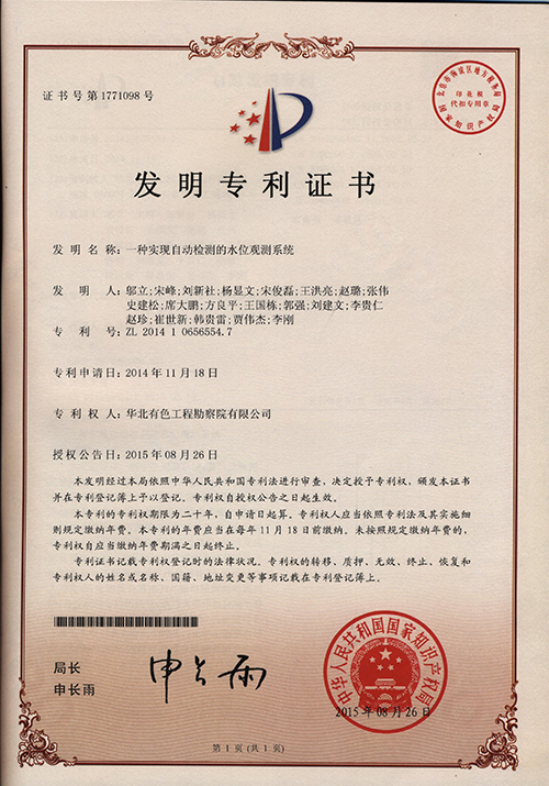 本發(fā)明涉及一種水位觀測系統(tǒng),其包括電源、機械部件、控制部件以及數(shù)據(jù)采集部件。本發(fā)明的水位觀測系統(tǒng)運用水體浮力原理設計制作,利用浮標重力及其所受浮力平衡點確定水面位置,浮標可隨水位變化而靈敏的、準確的移動;水位觀測系統(tǒng)實時的采集記錄浮標移動信息,從而完成水位觀測工作。本發(fā)明的水位觀測系統(tǒng)可以通過控制電路及電磁離合器實現(xiàn)自動控制,從而減少人力支出,電磁離合器由PLC輸出短暫的電流啟動,并控制剎車輪的回位,從而實現(xiàn)浮標自動下移及平衡;通過電機帶動集線輪轉動,從而使浮標上移至其受平衡力時自動停止。由于電磁離合器只是短暫的啟動,因此可以減少能耗并防止電路過熱燒損。