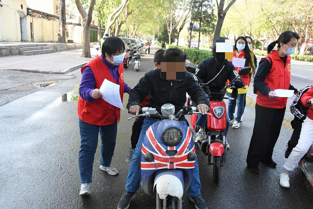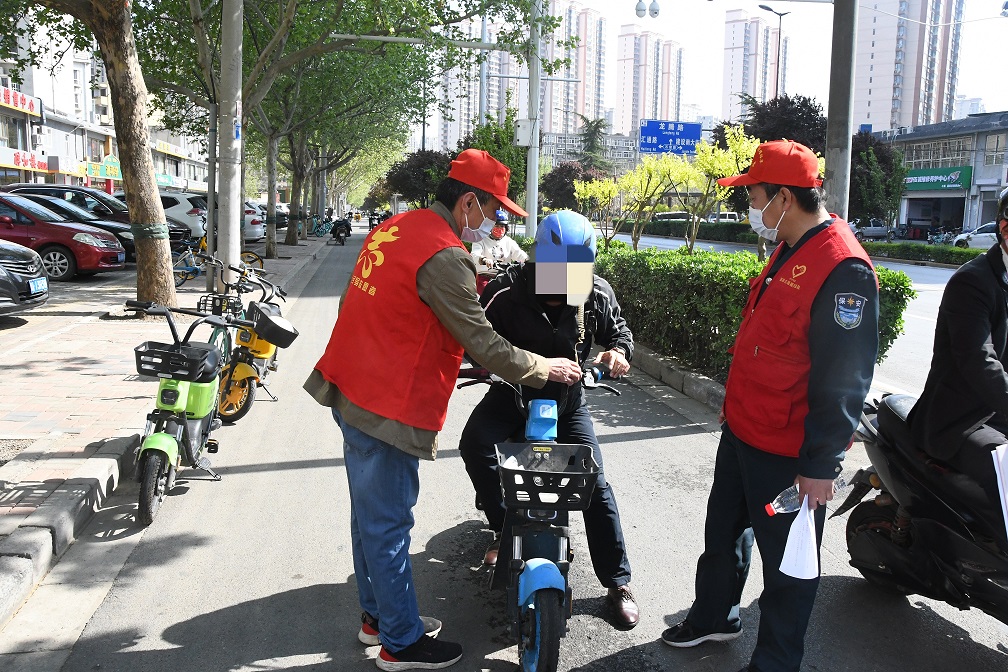 活動(dòng)期間,志愿者身著紅色志愿服,根據(jù)分工安排,在兩個(gè)小區(qū)門(mén)口協(xié)助門(mén)衛(wèi)不厭其煩地對(duì)未戴安全頭盔的行人進(jìn)行勸導(dǎo):出行時(shí)要正確佩戴安全頭盔,告知其各類違法行為的危害及后果,督促其立即改正;對(duì)尚未登記上牌的電動(dòng)自行車車主進(jìn)行提醒:到公安交管部門(mén)設(shè)置的登記上牌網(wǎng)點(diǎn)辦理登記備案業(yè)務(wù)。他們以高度的社會(huì)責(zé)任感和昂揚(yáng)的精神面貌展現(xiàn)出了我隊(duì)的良好形象,詮釋了志愿服務(wù)的精神,也為城市增添了一道靚麗的風(fēng)景線。