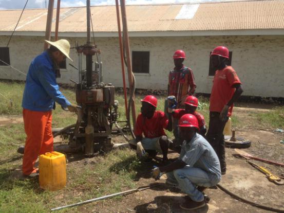 由于該區(qū)域地層是異常堅(jiān) 硬的輝綠巖,施工伊始工作人員就遇到了困難,鉆進(jìn)相當(dāng)緩慢。機(jī)長時良橋邊干變分析原因,根據(jù)實(shí)際情況,對連體泥漿泵進(jìn)行了改良,提高了施工效率,但這還是沒能達(dá)到讓項(xiàng)目組滿意的施工效果。為了確保按時完工,大家不得不取消了午休時間,加班加點(diǎn)施工。后來項(xiàng)目組第二批成員抵達(dá)南蘇丹后也立即將背包鉆機(jī)投入到朱巴醫(yī)院詳勘工作,大小兩臺鉆機(jī)配合,進(jìn)度有了很大提高。