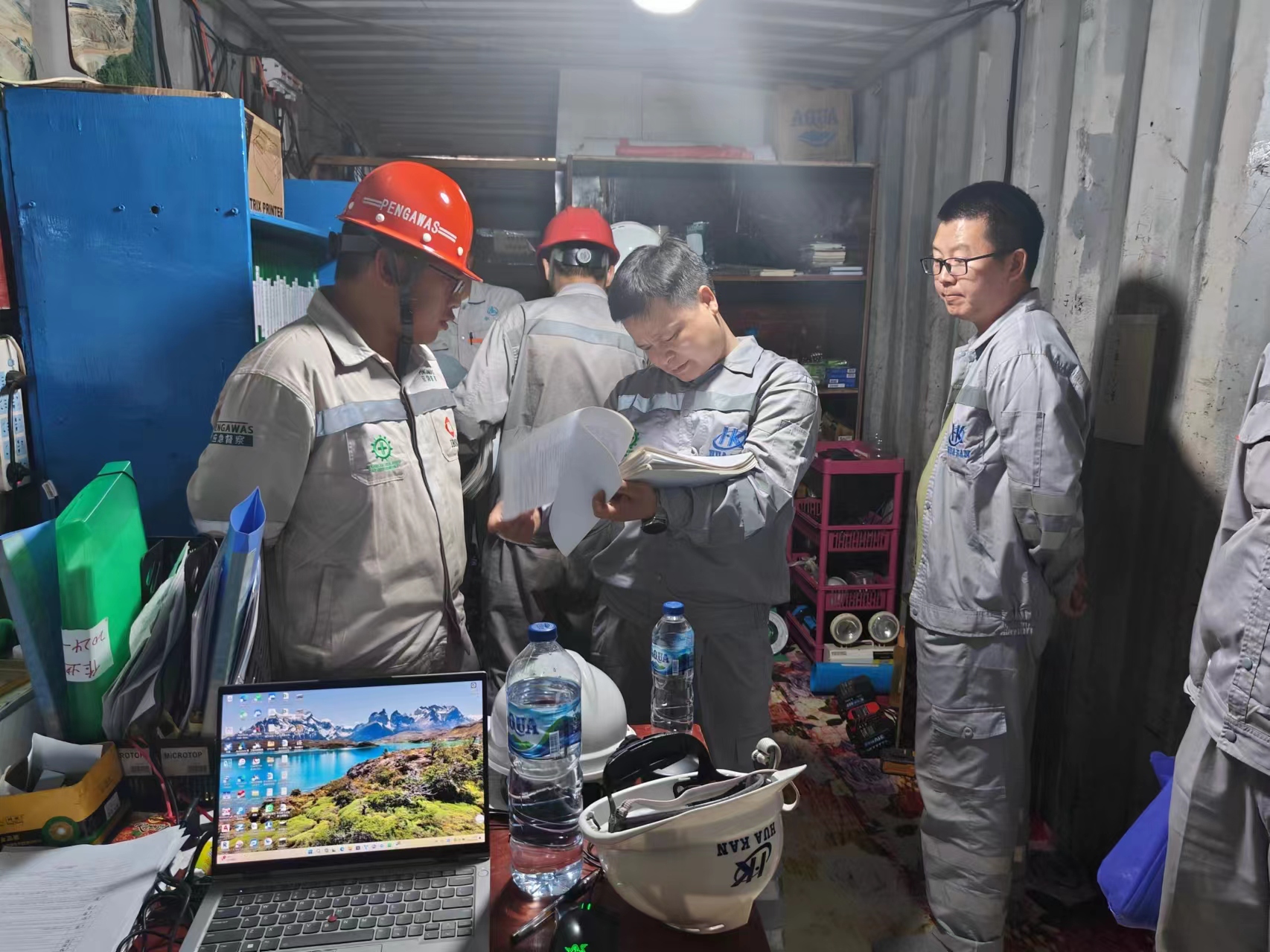 連日來,隊黨委委員、副隊長劉大金一行先后深入剛果(金)公司、印尼公司調(diào)研,實地考察剛果(金)公司紫金基地、華剛基地、KFM基地,印尼公司雅加達辦事處、中蘇拉威西省華越項目基地、永譽國際項目勘察、青山園區(qū)邊坡防護、中青新能源樁基施工、ITSS工程補勘等項目現(xiàn)場,詳細了解了在施項目、市場開拓、營地建設(shè)、基地生活、營商環(huán)境、科技創(chuàng)新、人才培養(yǎng)及規(guī)范化管理等情況,現(xiàn)場檢查安全施工、半軍事化管理推進情況,為公司發(fā)展中的重點難點出謀劃策,并親切慰問一線全體職工,送上新春祝福。