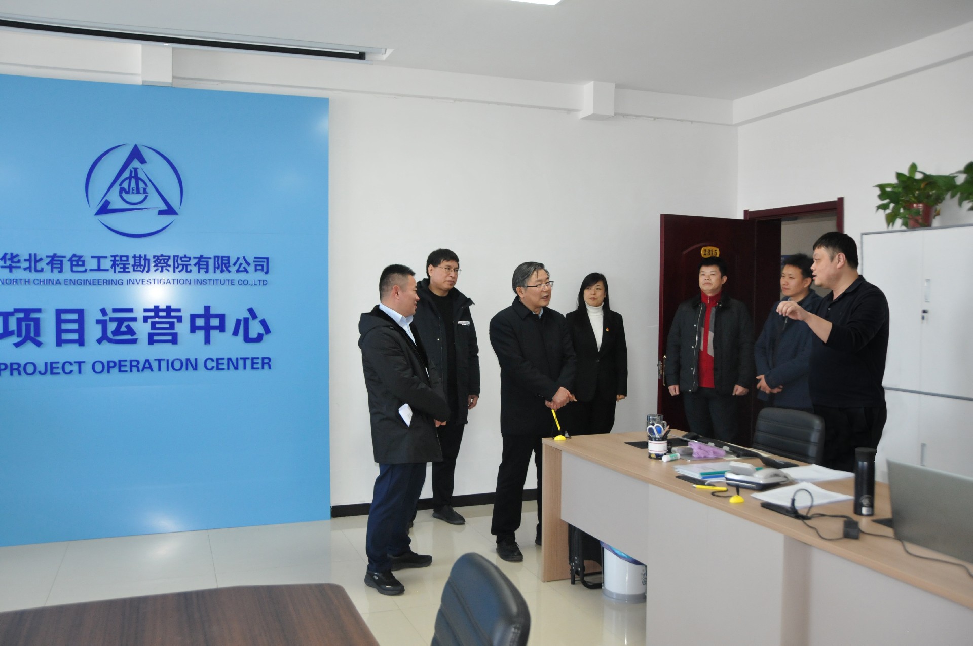 趙維明一行實地調(diào)研創(chuàng)新中心五大研發(fā)所,查看監(jiān)測預(yù)警平臺,聽取金屬礦山水工環(huán)自動化監(jiān)測預(yù)警平臺成果匯報,并深入機關(guān)各部門和相關(guān)單位看望慰問干部職工。