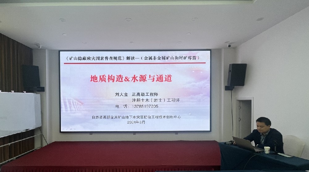 近日,受礦冶科技集團(tuán)有限公司安全培訓(xùn)中心邀請(qǐng),隊(duì)黨委委員、副隊(duì)長(zhǎng)劉大金在“礦山隱蔽致災(zāi)因素普查規(guī)范解讀——金屬非金屬礦山及尾礦庫(kù)篇”高級(jí)研修班進(jìn)行《地質(zhì)構(gòu)造&水源與通道》專題授課。